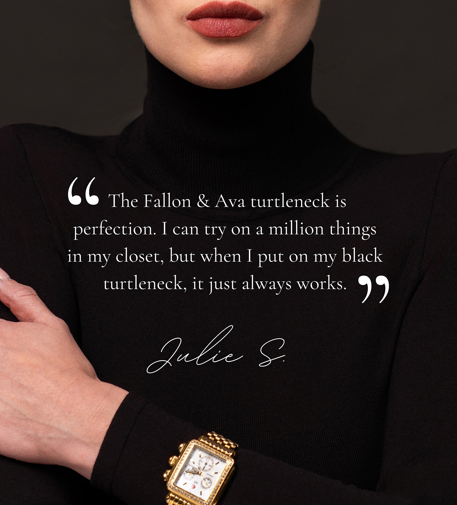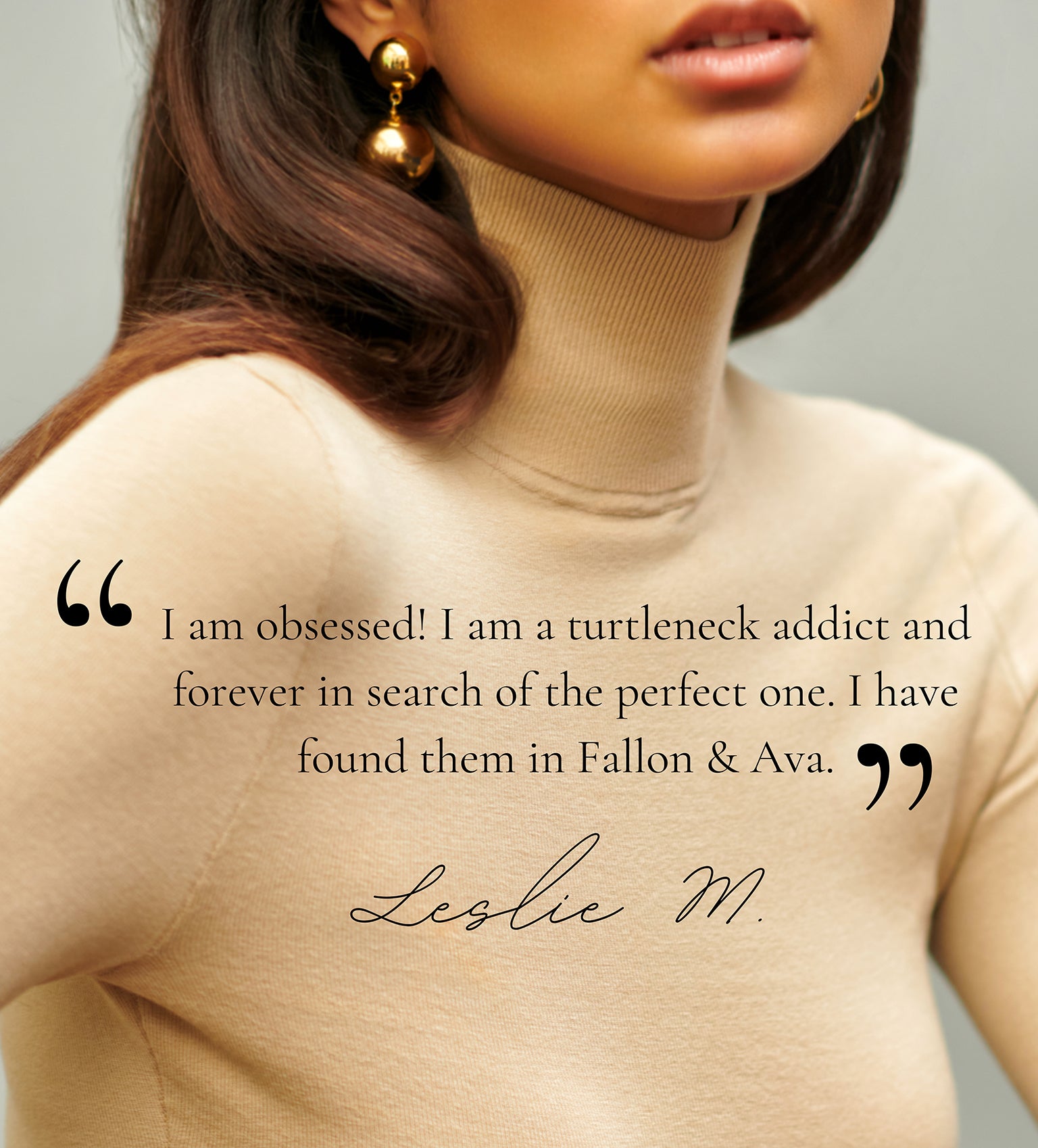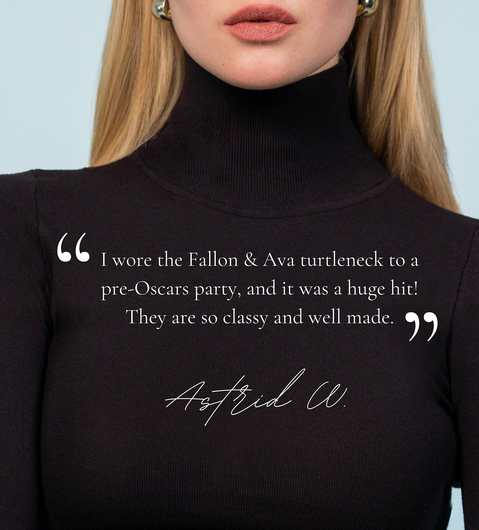 wearing a turtleneck. When you wear a Fallon & Ava turtleneck, you join a
